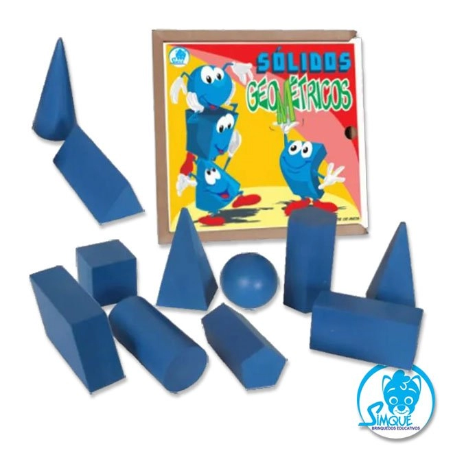 Composto por: pirâmide de base quadrada, prisma de base hexagonal, cilindro, cubo, prisma de base triangular, pirâmide de base retangular, retângulo, prisma de base pentagonal, paralelogramo, esfera e cone.