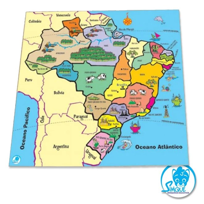 Para ser usado por pais e professores nas atividades de Geografia e História. Este quebra-cabeça permite a identificação e a memorização dos Estados do Brasil, de forma lúdica e prazerosa.