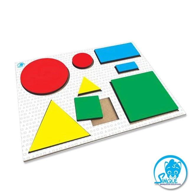 Este material é composto por peças em dois tamanhos e 4 cores, permite a manipulação e o desenvolvimento da coordenação, além de permitir a descoberta e o aprendizado de nomes e características das figuras geométricas.