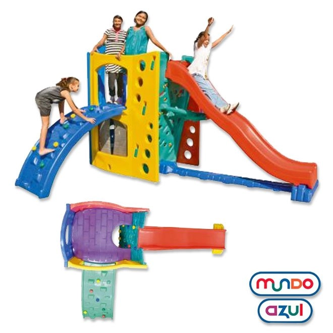 • Playground Multicolorido • Escorregador gigante com prancha ondulada em formato de tobogã com base de apoio em formato de T. • Rapel em curva com pedras de apoio para os pés e mãos. • Parede de escalada interna para acesso ao escorregador grande. • Piscina de bolinhas parte inferior (inclusas 500 bolinhas). • Plataforma com abertura para escalada com acesso ao escorregador. • Piso na piscina de bolinha para conforto. • Escalada em curva externa.