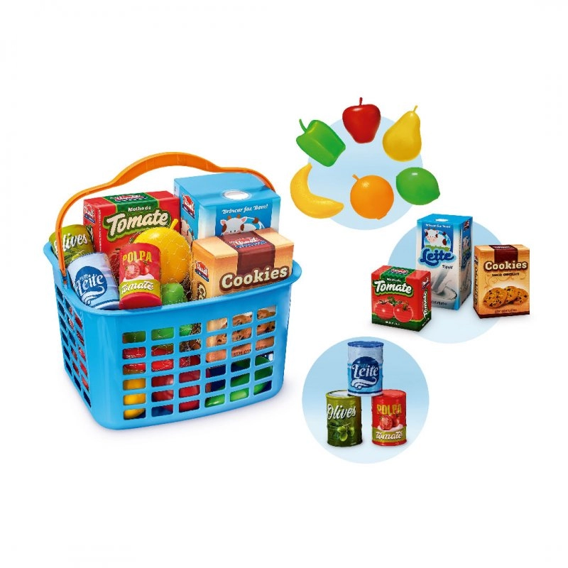 A Feirinha Usual é um lindo set cheio de acessórios fabricado pela Usual Brinquedos. Este brinquedo encanta os pequeninos que brincarão muito de fazer compras. Este kit é composto da cestinha de compras, lata de leite, lata de polpa de tomate, lata de azeite, caixa de leite, caixa de molho de tomate, caixa de cookies e várias frutas como: banana, laranja, limão, pera, maçã e outras (simulacro). Com este lindo kit o estimulo a criatividade e diversão estão garantidos. Confeccionada em materiais plásticos de alta qualidade (Polipropileno) e as caixinhas em cartonagem. Produto certificado pelo INMETRO para crianças a partir de 3 anos de idade (verifique todas as recomendações na embalagem). Mais um super produto da Usual Brinquedos, com garantia de qualidade 100% fabricado no Brasil! As cores podem variar de acordo com a disponibilidade.