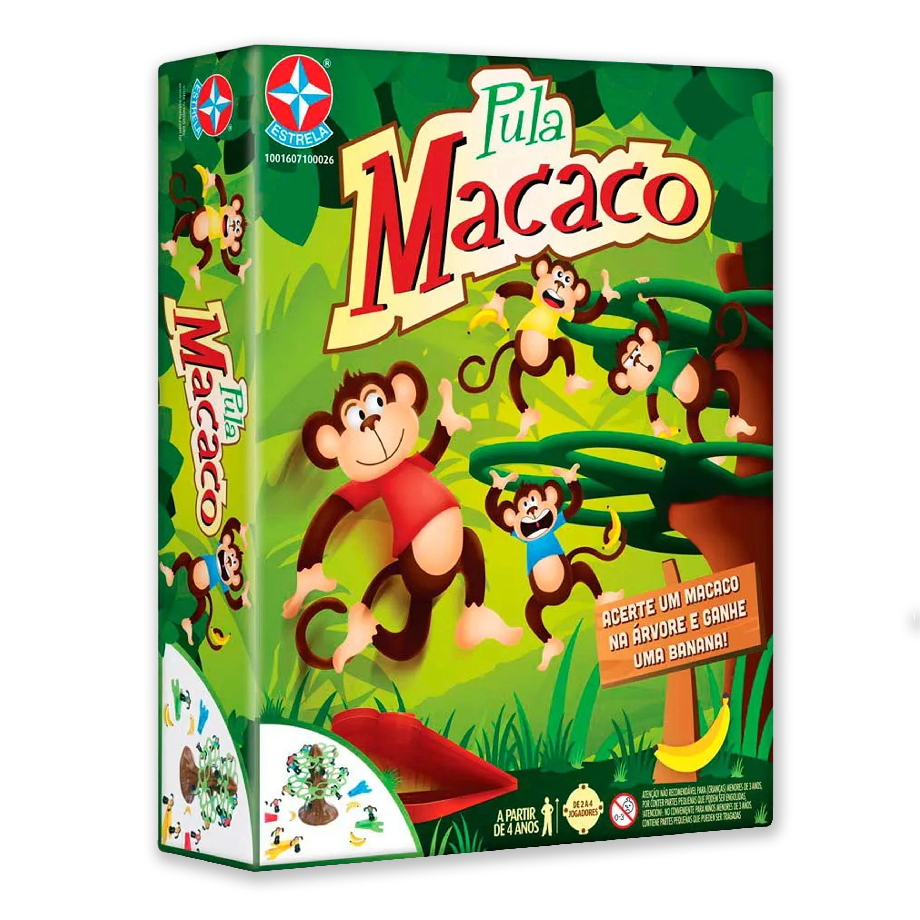 1 tronco, 2 copas, 4 'lanças-macacos', 16 macaquinhos, 16 bananas de cartão e folha de adesivos
