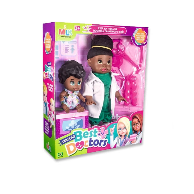 Boneca doutora e paciente que vem com acessórios médicos para a brincadeira ficar completa, as meninas vão amar! lindas e super fofas, feita em vinil macio e atóxico. Para a criança brincar de doutora e paciente.