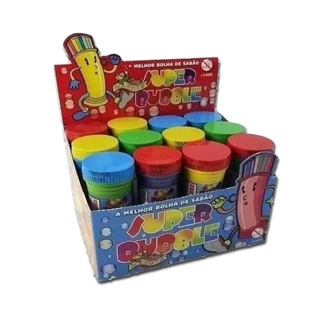 Bolha de Sabão em embalagem plástica muito resistente com ilustração do temas em cores vivas.
