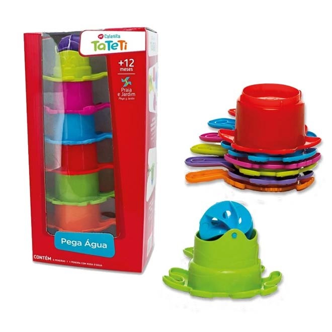 Brincar com água é sempre mais divertido com o Pega Água! São 7 pecinhas com desenhos do fundo do mar par empilhar e desenvolver a coordenação motora. Para a brincadeira ficar ainda mais divertida jogue água por cima do brinquedo e a rodinha no topo começa a girar.