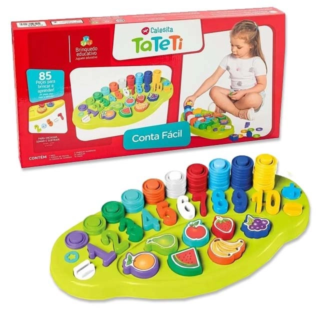 Matemática na prática! Para brincar e aprender o tabuleiro vem com 85 peças. Na brincadeira os pequeninos desenvolvem o raciocínio lógico, a atenção e concentração, conhecem os números e muito mais! O Conta Fácil torna o aprendizado interativo e divertido. Todas as peças desencaixam para estimular a coordenação motora fina ao encaixar, e o Aprendizado ao somar ou subtrair.