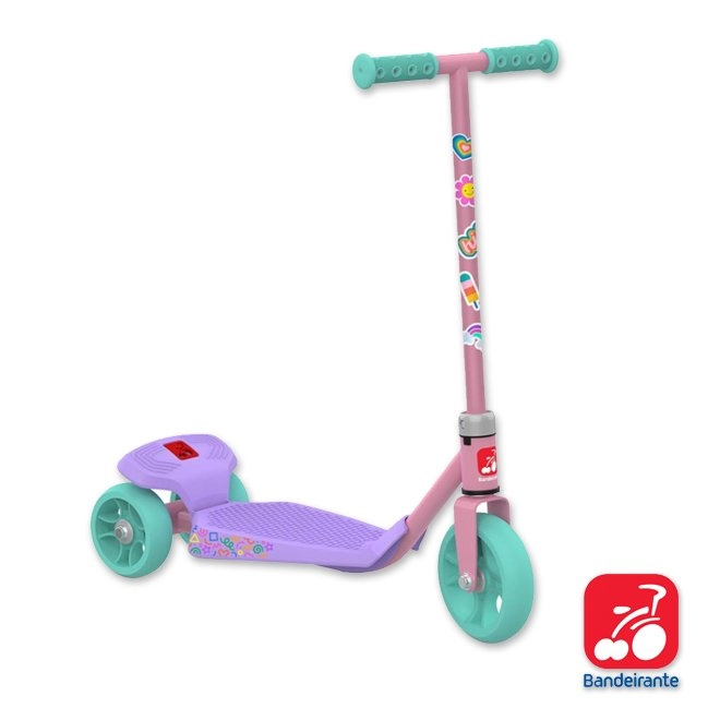 Três rodas para mais estabilidade e apoio Novo sistema de fixação do guidão. Base mais larga: Ideal para iniciantes, com espaço para a criança apoiar os dois pezinhos com segurança. Freio traseiro. Guidão com limitador de giro. Manoplas emborrachadas atoxicas. Idade: +24 meses. Peso máximo suportado: 50kg