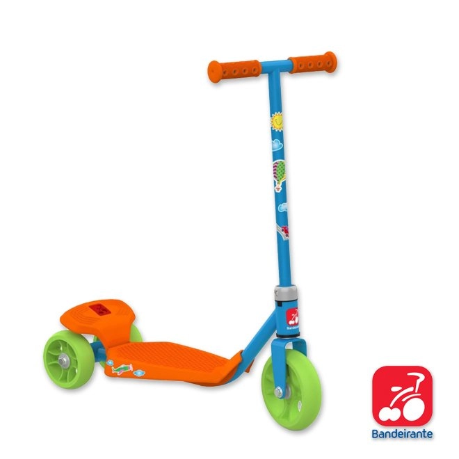 Três rodas para mais estabilidade e apoio Novo sistema de fixação do guidão. Base mais larga: Ideal para iniciantes, com espaço para a criança apoiar os dois pezinhos com segurança. Freio traseiro. Guidão com limitador de giro. Manoplas emborrachadas atóxicas. Idade: +24 meses. Peso máximo suportado: 50kg