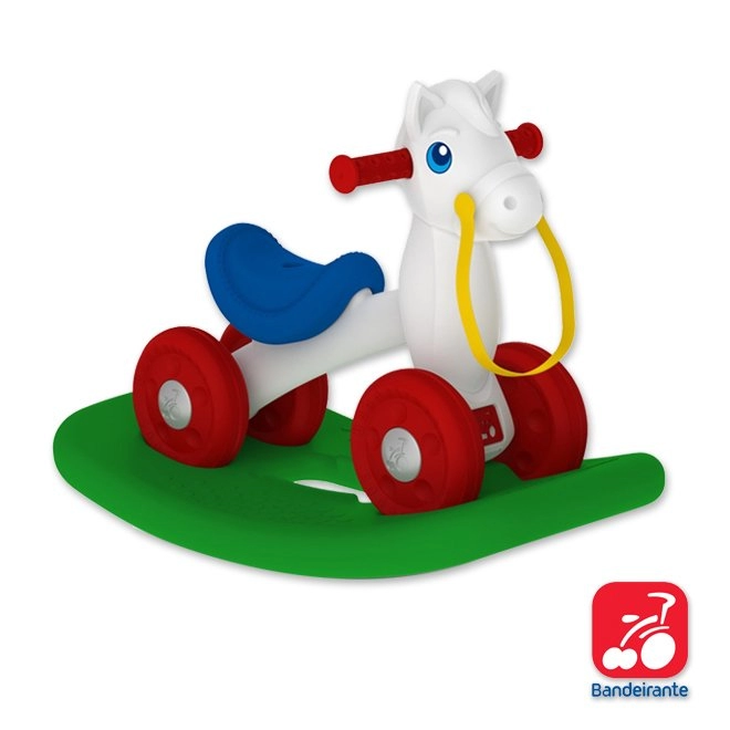 FUNÇÃO BALANÇO: Por meio da base, oferece um balanço seguro e confortável FUNÇÃO EQUILÍBRIO: Removendo a base, a criança impulsiona o brinquedo com os pés, desenvolvendo o equilíbrio e a coordenação motora Com a base removida, a criança pode puxar o Pônei utilizando a alça acoplada que acompanha o brinquedo, guidão com manoplas emborrachadas atóxicas. Chip sonoro com som de relincho e cavalgada. Estrutura com dupla camada para maior durabilidade e resistência. Base de balanço removível Assento com baixa distância do solo para a criança subir e descer de forma fácil e segura