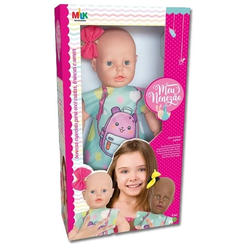 A Boneca Meu Nenezão é uma adorável opção para a criança que gosta de brincar e cuidar do neném. A criança poderá interagir com a boneca de uma forma semelhante ao que fariam com um bebê de verdade. Tamanho aproximado 55 cm.