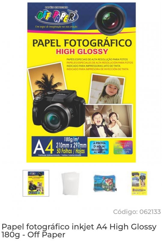 Voltar para a página inicial   >   BAZAR / PAPELARIA / ESCRITÓRIO   >   PAPEL FOTOGRAFICO INKJET A4 HIG GLOSSY 180 GR - PCT C/ 50