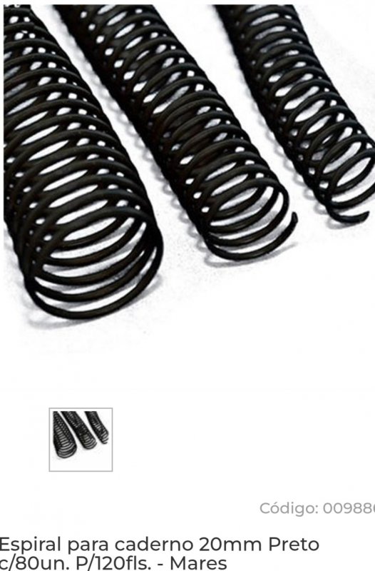 Voltar para a página inicial   >   BAZAR / PAPELARIA / ESCRITÓRIO   >   Espiral para caderno 20mm Preto c/80un. P/120fls.