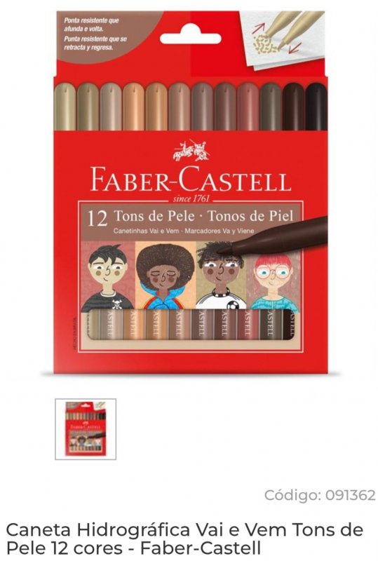 Caneta Hidrográfica Vai e Vem Tons de Pele 12 cores - Faber-Castell