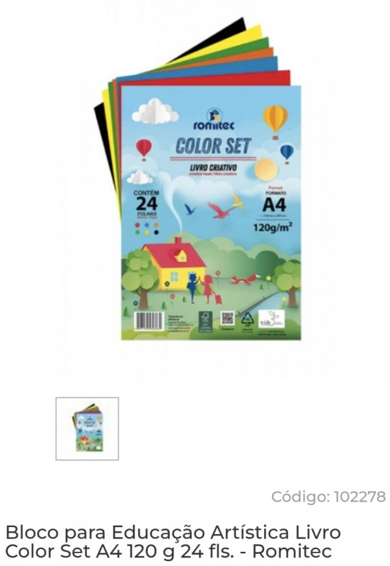 BLOCO P/ EDUCAÇÃO ARTÍSTICA COLOR SET 120G/ A4 24 FLS.