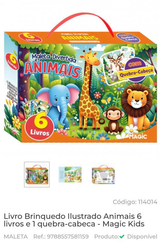 Livro Brinquedo Ilustrado Animais 6 livros e 1 quebra-cabeca .