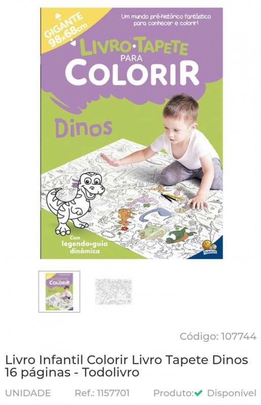 Voltar para a página inicial   >   LIVROS EDUCATIVOS   >   Livro Infantil Colorir Livro Tapete Dinos 16 páginas .