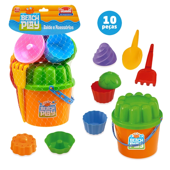 Kit praia com 10 peças em cores vibrantes.