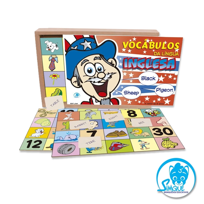 É cada vez mais importante o aprendizado de uma segunda língua. Este loto de imagens e palavras permite o contato com a língua inglesa através do jogo.