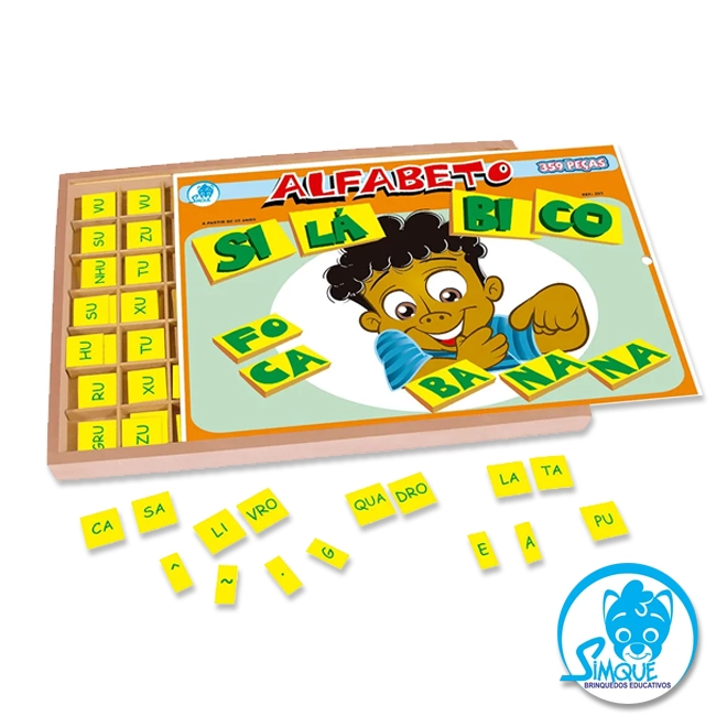 Este material foi elaborado visando complementar o trabalho de Alfabetização. Pode ser usado em todas as etapas da alfabetização. Contém as famílias silábicas, as vogais silábicas, as consoantes, acento agudo, circunflexo, cedilha ou til, que aparecem com frequência na língua portuguesa. Propicia o desenvolvimento da criança nos aspectos referentes não só à alfabetização como também a sociabilidade e criatividade. O uso deste material possibilita que a criança coloque em jogo todos seus conhecimentos disponíveis na construção de palavras e pequenos textos, através de um material concreto.
